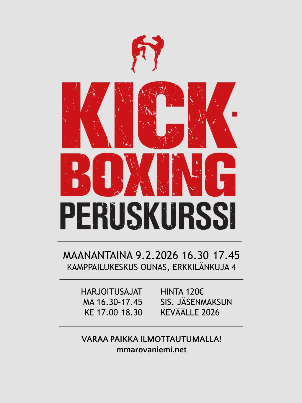 MMA Rovaniemi järjestää Muksujutsu -kurssin 7–12-vuotiaille lapsille 22.1.2026 alkaen. Kurssilla harjoittelemme brasilialaisen jujutsun perusteita erilaisten leikkien ja perusliikkeiden keinoin. Katso tarkemmat tiedot ilmoittautumislinkin takaa